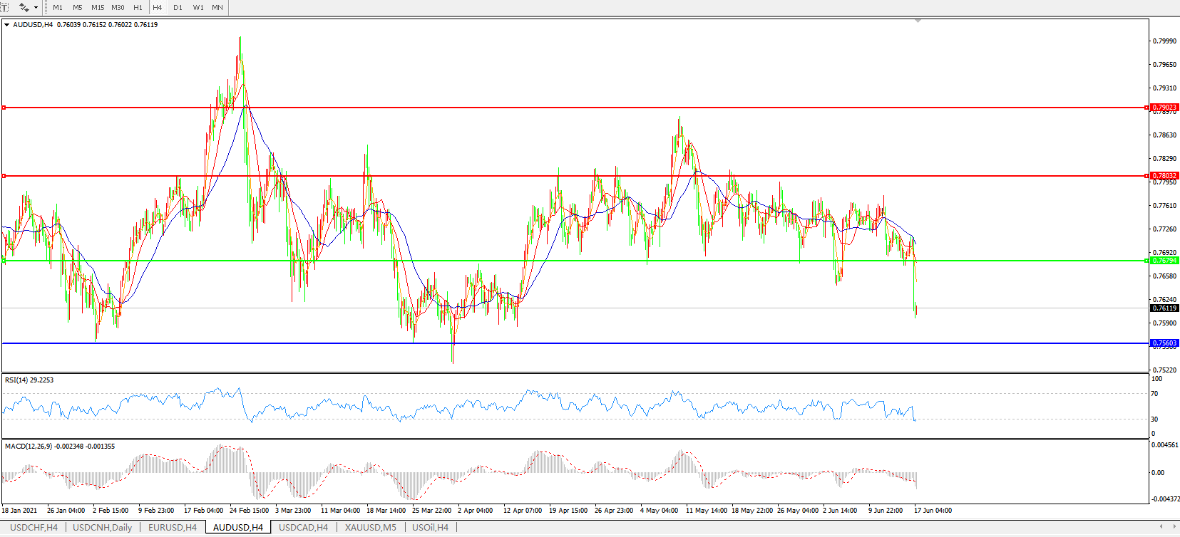 交易策略:0.7680下方看跌,目标0.7560、0.7400