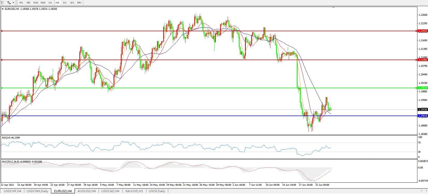 交易策略:1.2000下方看跌,目标1.1900、1.1800