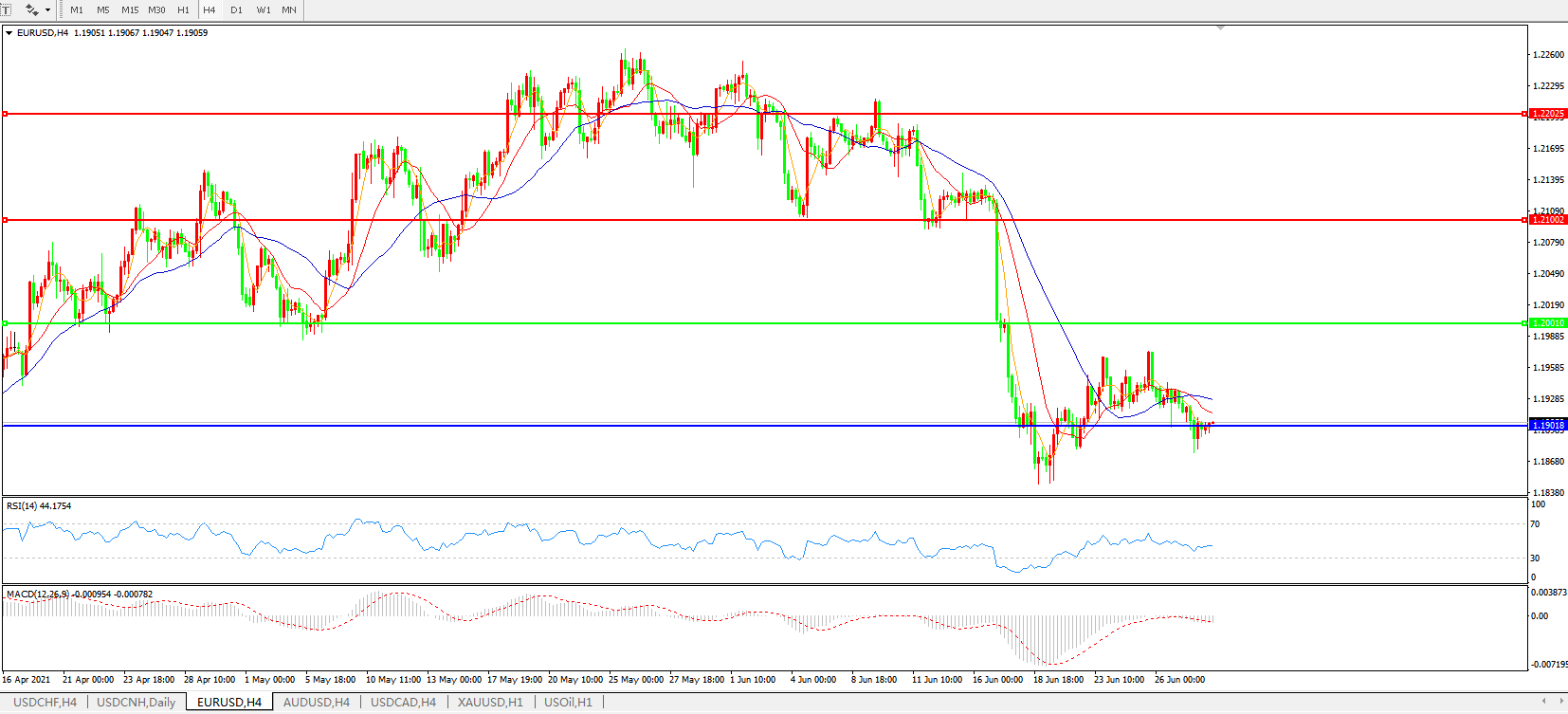 交易策略:1.2000下方看跌,目标1.1900、1.1800