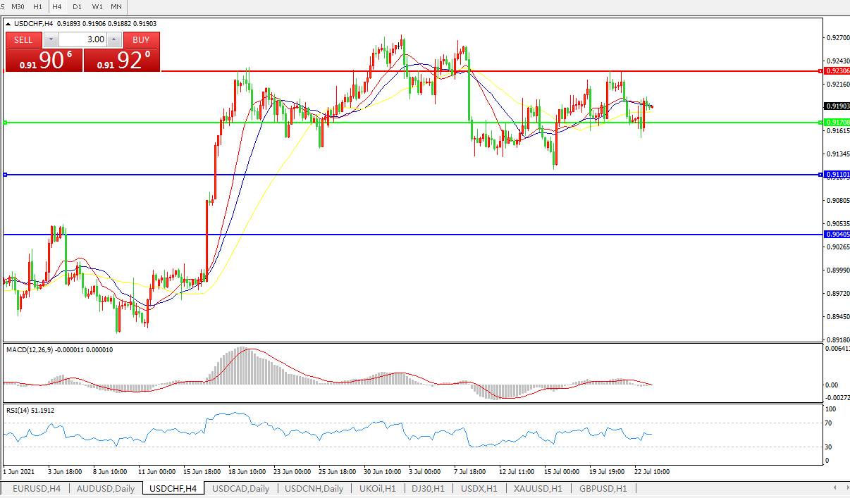 交易策略:0.9170上方看涨,目标0.9230、0.9300