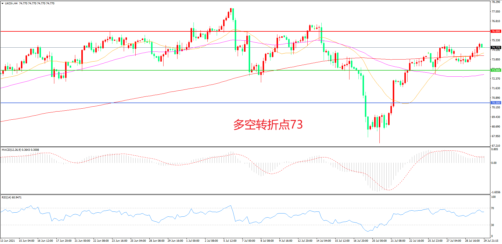 交易策略:在73.00之上看涨,目标76.00               79.00
