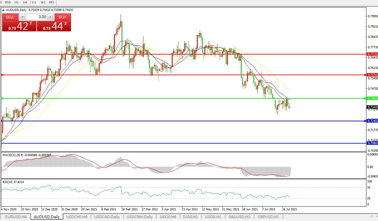 交易策略:0.7400下方看跌,目标0.7240、0.7080