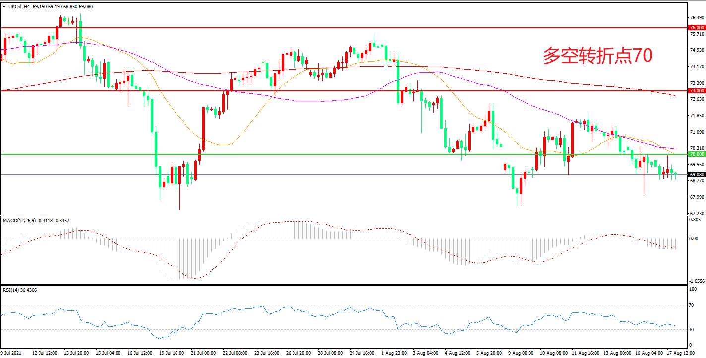交易策略:在70.00之下看跌,目标66.50 62.00