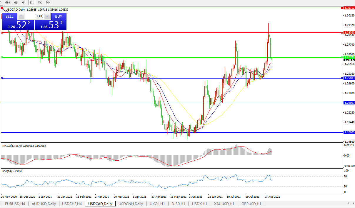 交易策略:在1.2670之下,看跌,目标价位为1.2500、1.2300
