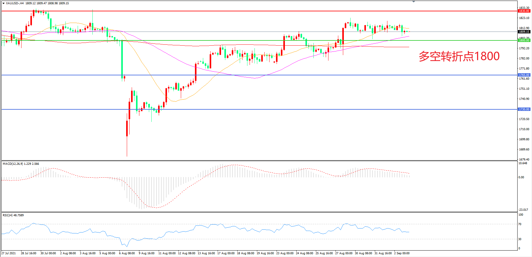 多空转折点:1800.00