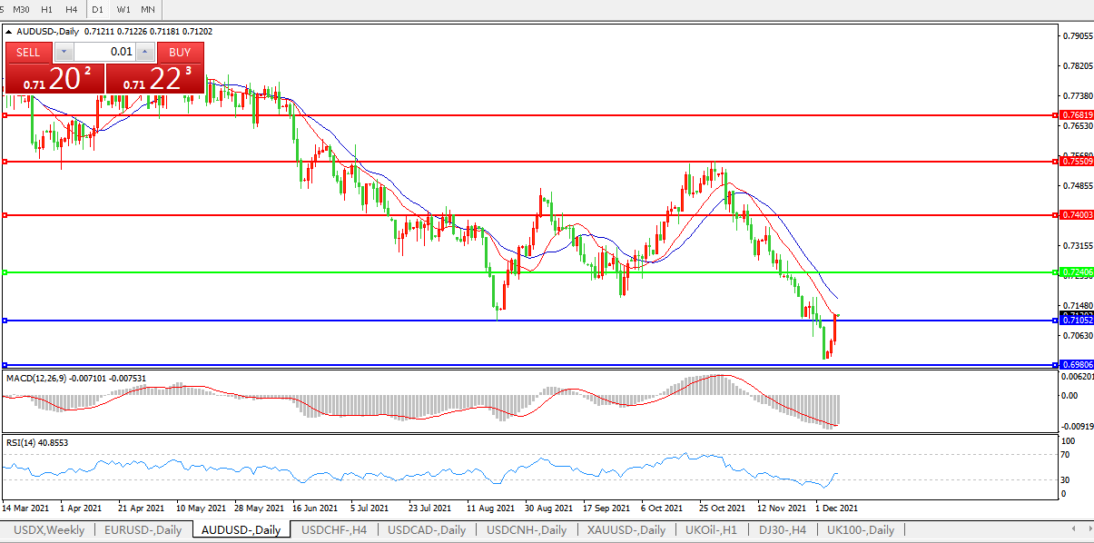 大宗商品货币与其他风险资产周二上涨,因中国承诺采取措施支持经济增长。美欧股市攀升,加元和澳元领涨G-10货币。被视为风险偏好动态指标的澳元创下逾三年来的最佳单日表现,澳元从上周触及的13个月低点反弹至近一周高点,上涨0.98%,至0.7119美元;此前澳洲联储(RBA)表示相信Omicron变种的出现不会阻碍经济复苏。