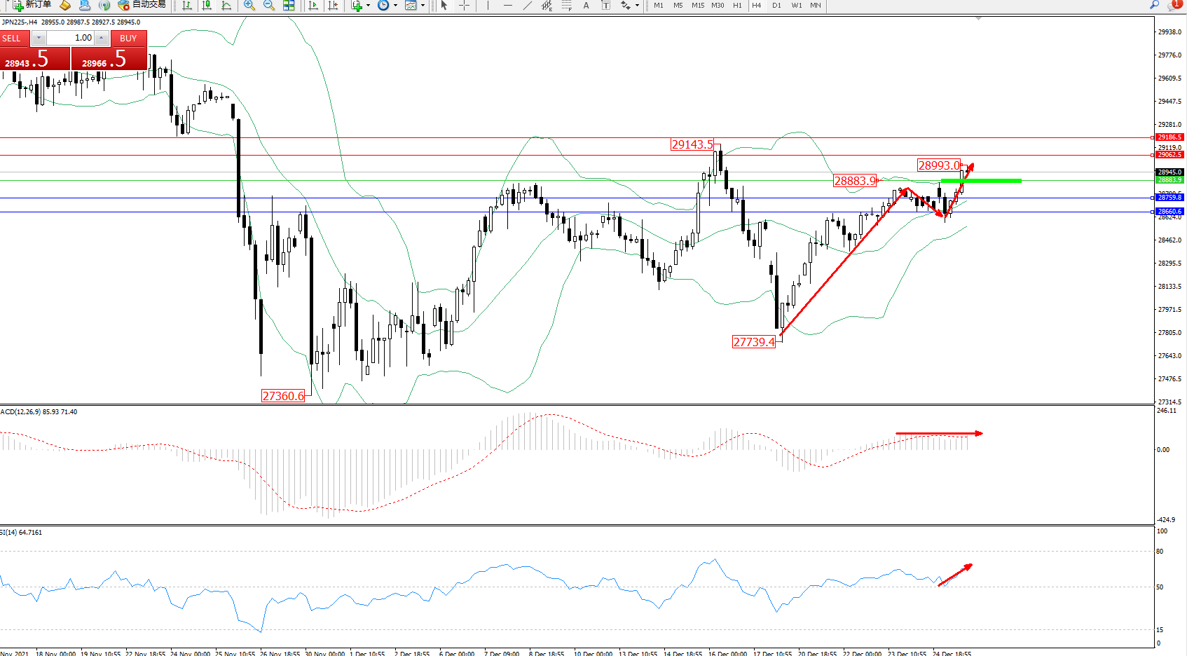 日经指数JPN225——4小时K线图显示: