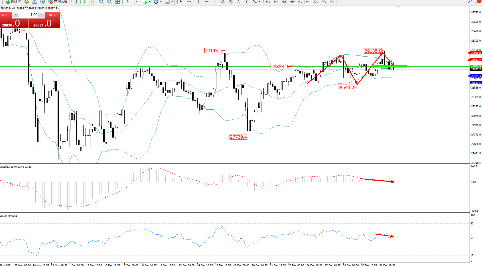 日经225指数12月30日(周四)收盘下跌95.88点,跌幅0.33%,报28811.00点。日经225指数在2021年上涨4.9%,至28791.71点,创1989年以来的最高年终收盘水平。奥密克戎变异株的较小影响仍然支撑着潜在的看涨情绪。看涨情绪在股市普遍乐观的基调中表现明显。