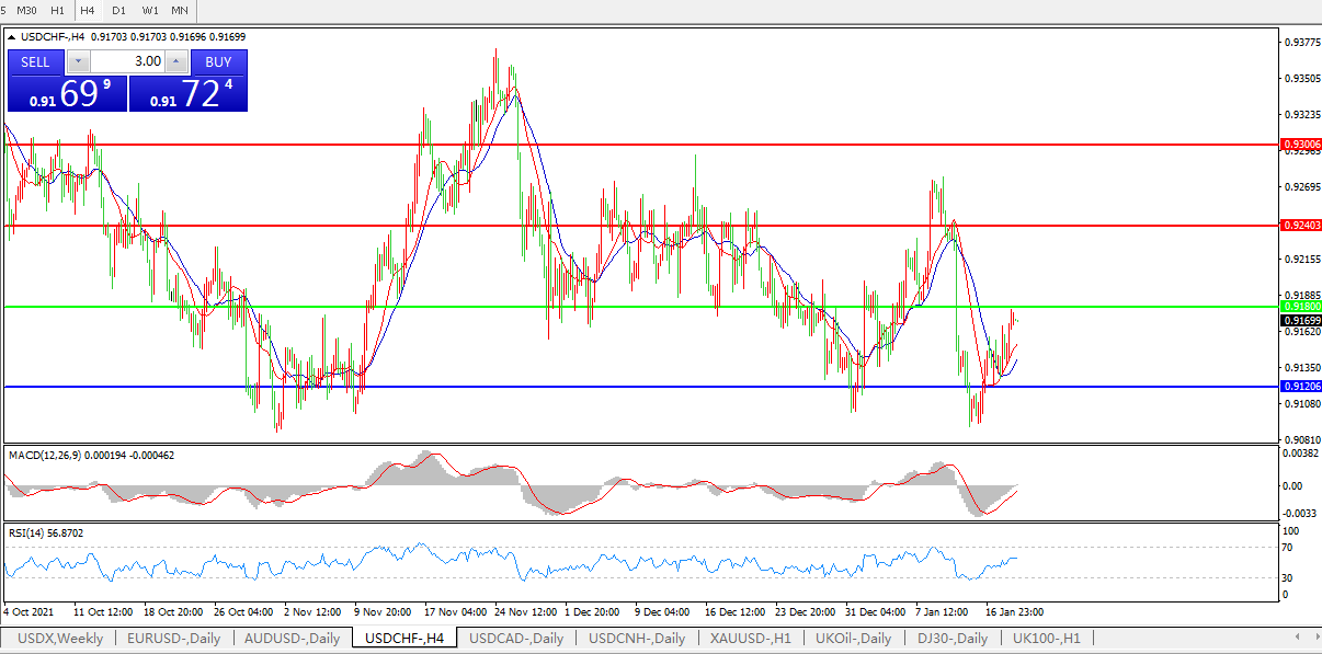 交易策略:0.9180下方看跌,目标0.9120、0.9040