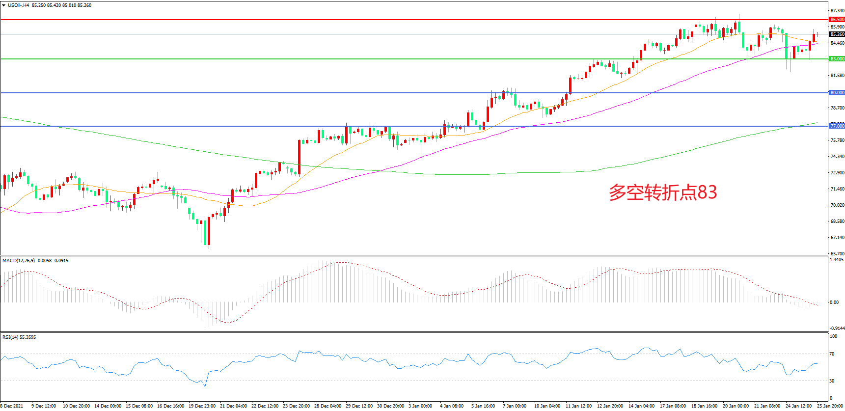 多空转折点:83.00