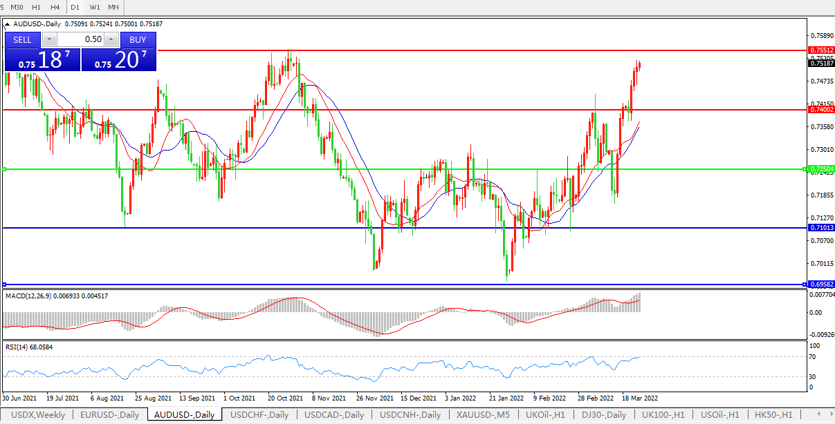 交易策略:0.7250上方看涨,目标0.7400、0.7550