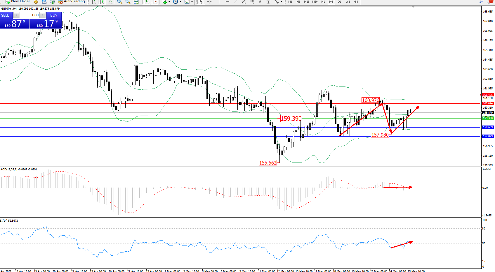 交易策略:159.390上方看涨,目标158.609、157.829