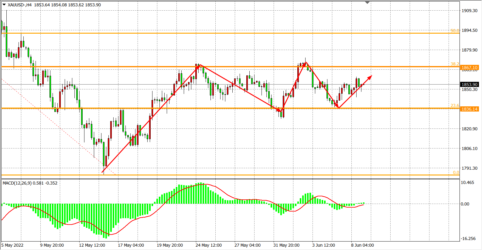 备选策略:在1850.00之上看涨,目标1858.00 1867.00