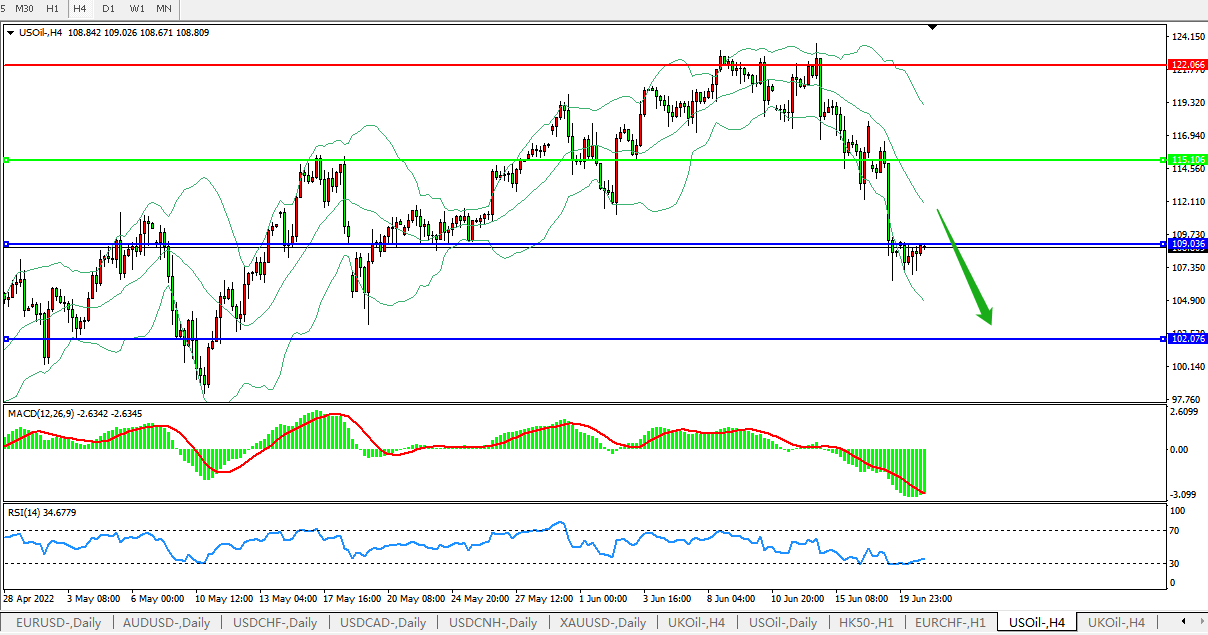 美国原油USOil 4小时图
