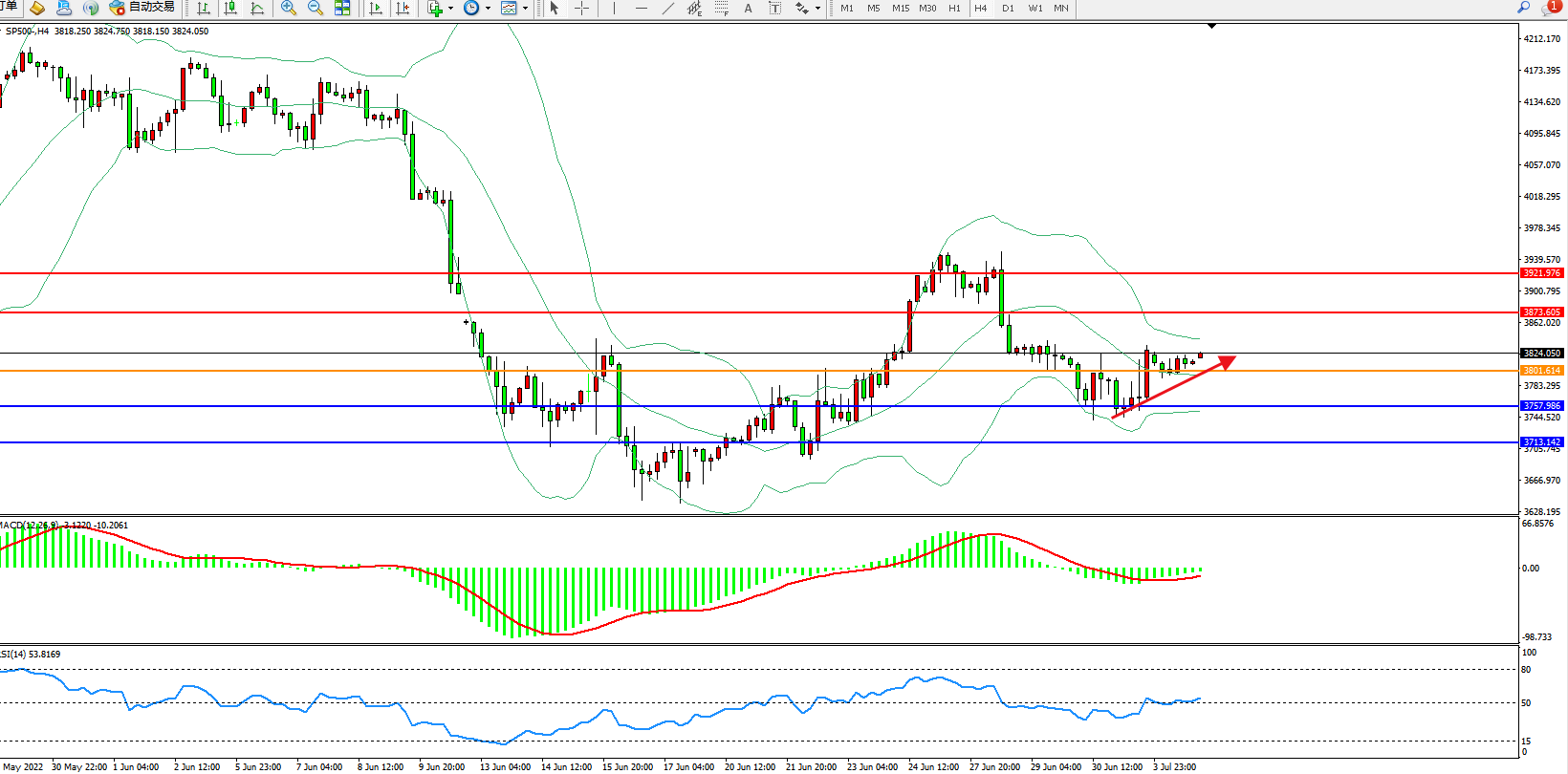 标普SP500——4小时K线图显示:
