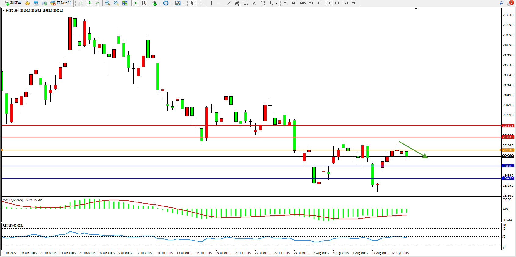 恒指HK50 4小时图