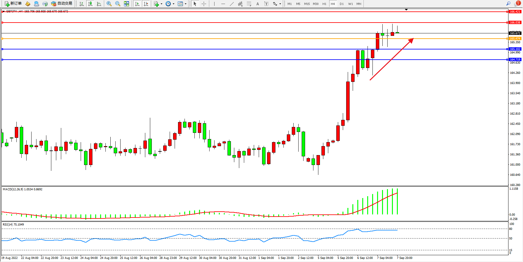 交易策略:165.474上方看涨,目标166.038、166.421