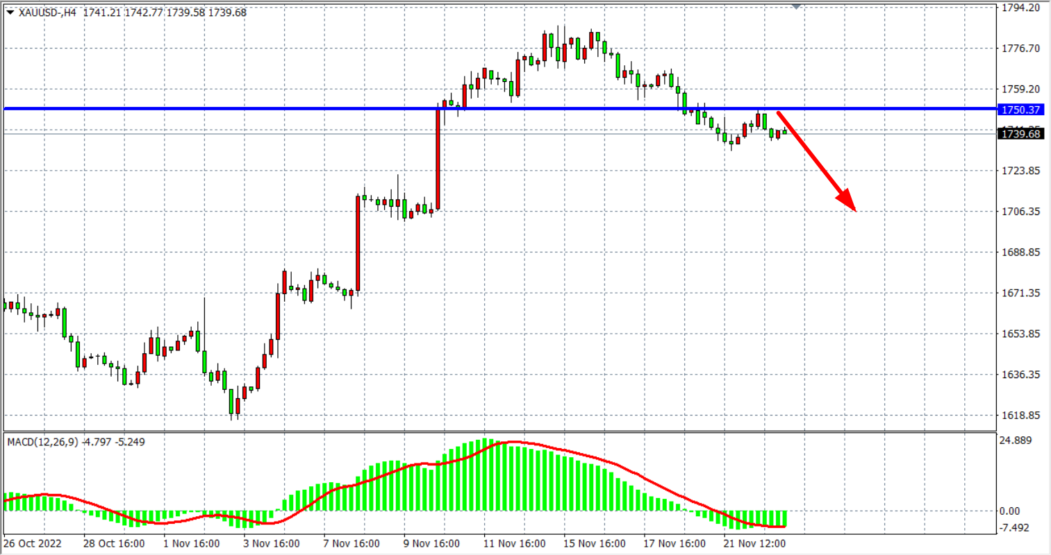 交易策略:在1750.00 之下看跌,目标1730.00 1715.00