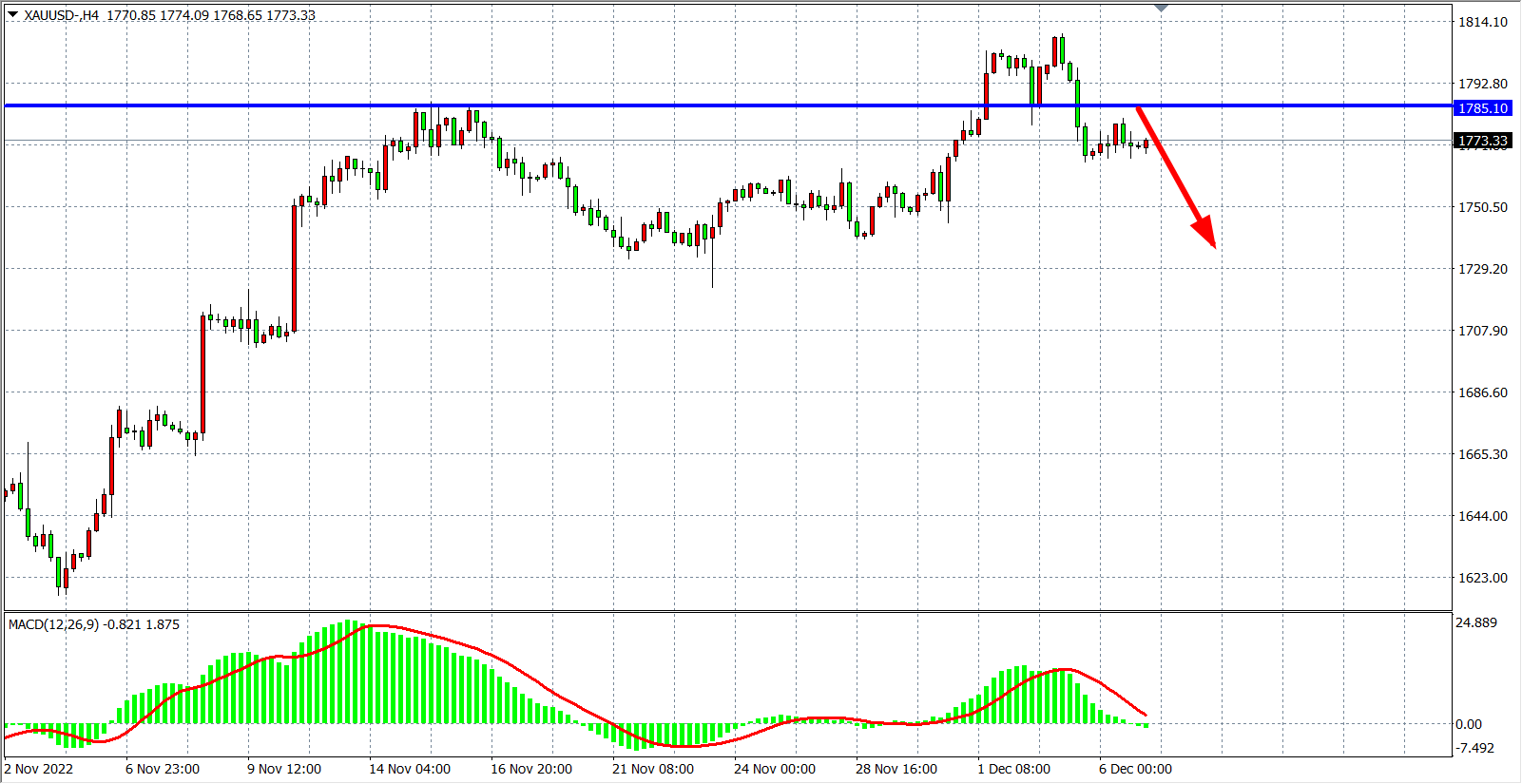 交易策略:在1785.00 之下看跌,目标1770.00 1755.00