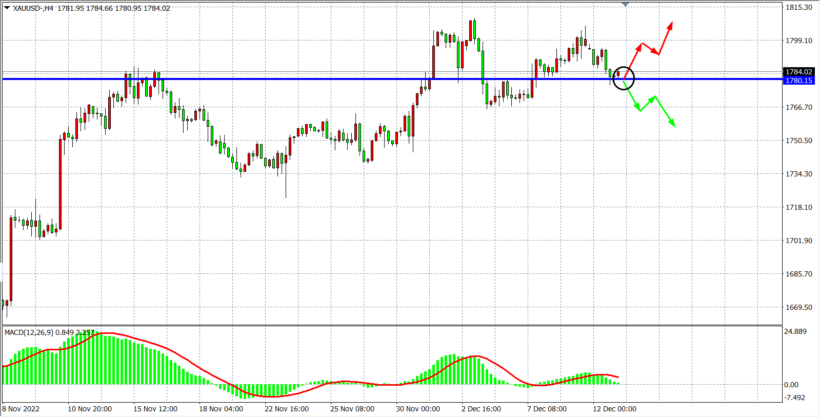 备选策略:在1780.00之下看跌,目标1765.00 1750.00