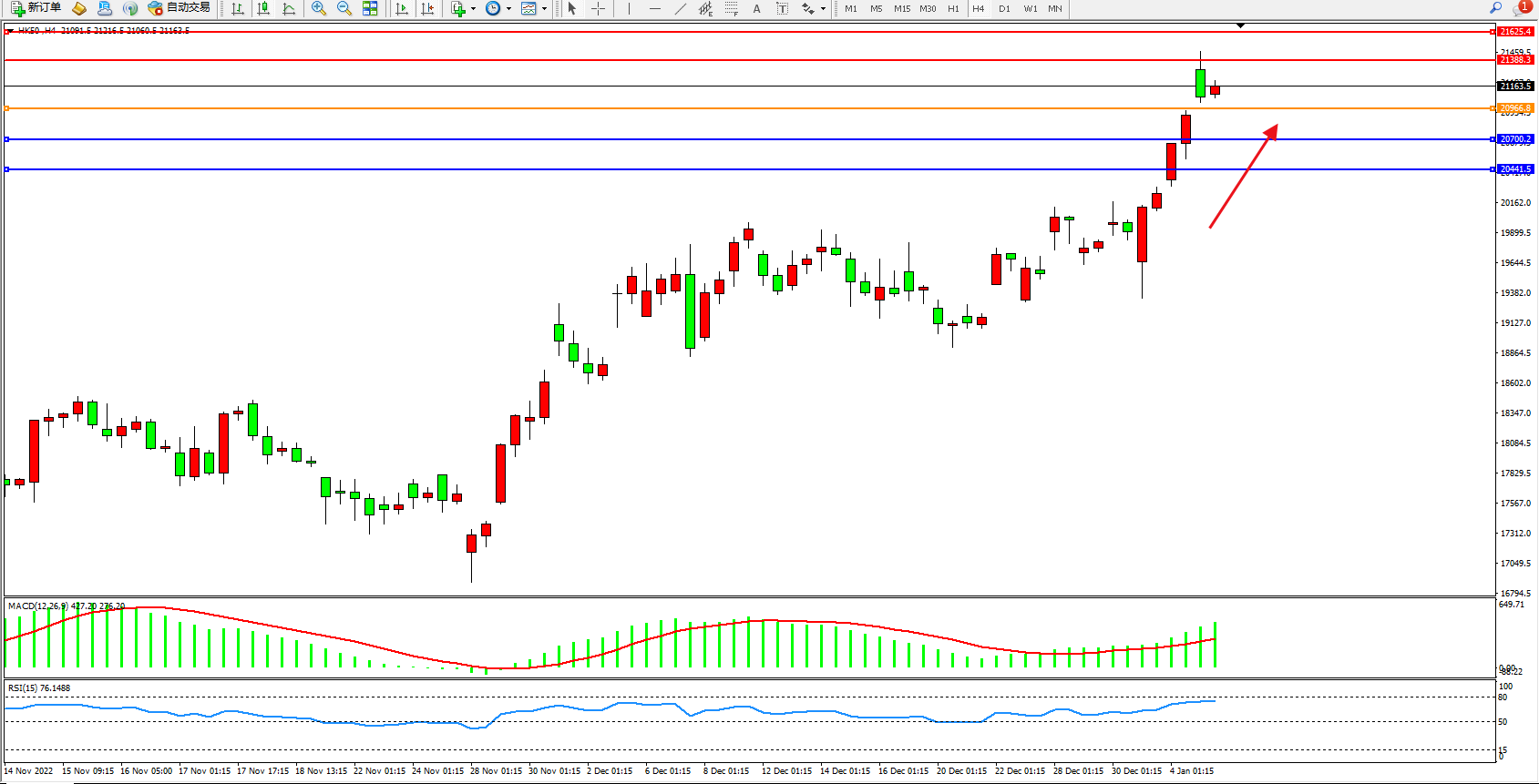 恒指HK50 4小时图