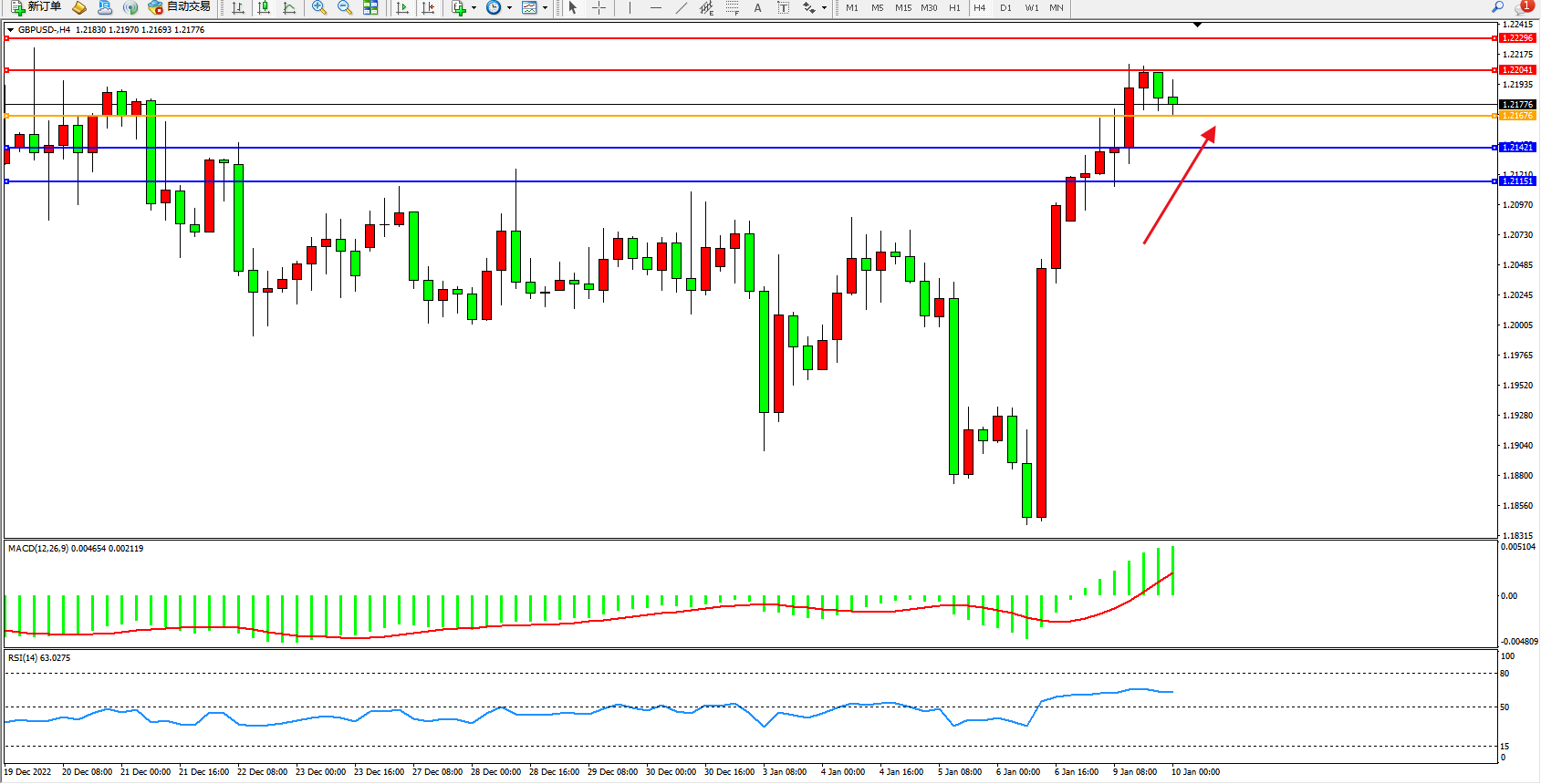 交易策略:1.21676上方看涨,目标1.22041、1.22296
