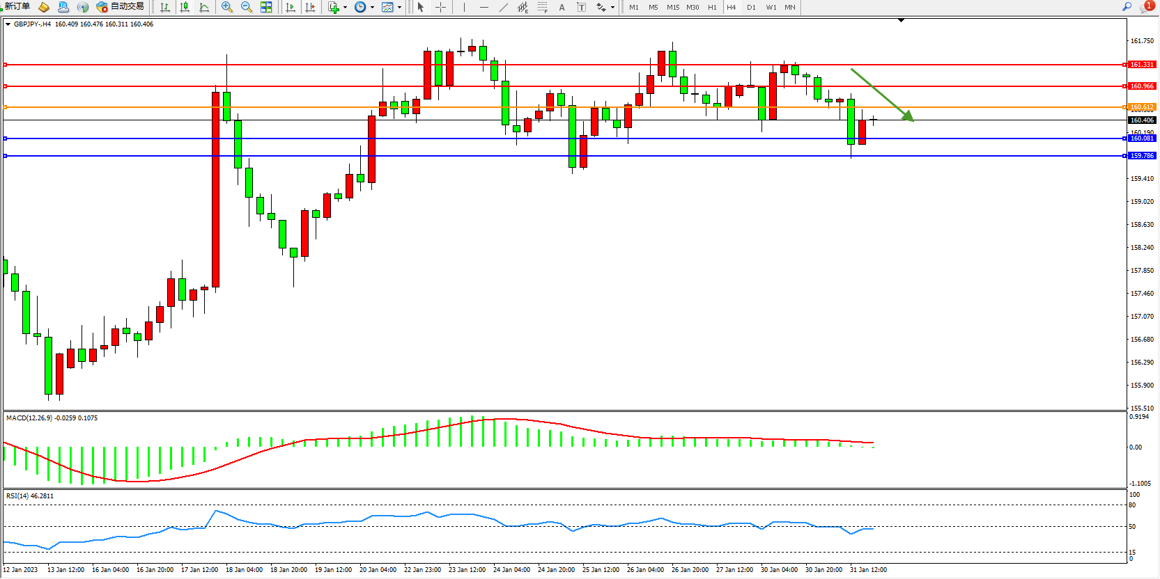 交易策略:160.612下方看跌,目标160.081、159.789