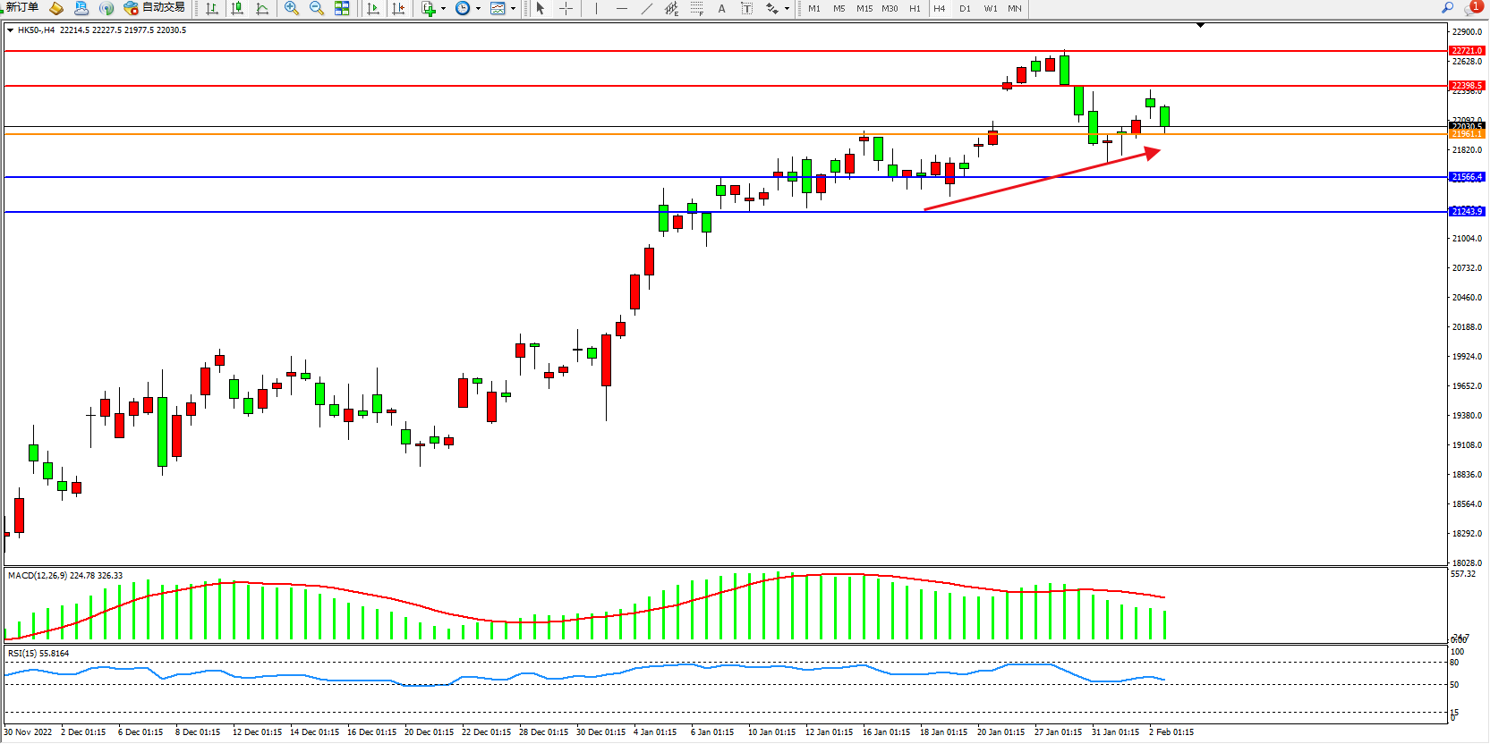 香港恒生指数2月2日(周四)收盘下跌113.82点,跌幅0.52%,报21958.36点;港股午后三大指数呈震荡回落趋势,恒指、国指率先转跌,分别收跌0.52%和0.72%,恒生科技指数相对强势,临近尾盘翻绿,微幅上涨0.02%。大型科技股午后多数转跌,美团跌近2%,阿里巴巴、网易、腾讯、快手均下跌,百度强势上涨5%;南下资金净流入5.64港元,大市成交额为1400亿港元。四川卫健委发布《四川省生育登记服务管理办法》,取消了对登记对象是否结婚的限制条件,取消了生育数量的限制,简化了生育登记的要求等。生育政策或将渐进式调整,预计将放开三孩生育,而生育鼓励政策将在未来十年循序渐进地加码。
