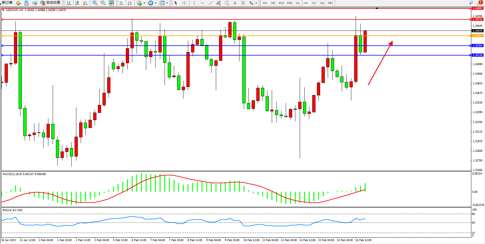 交易策略:1.34497上方看涨,目标1.34732、1.34892