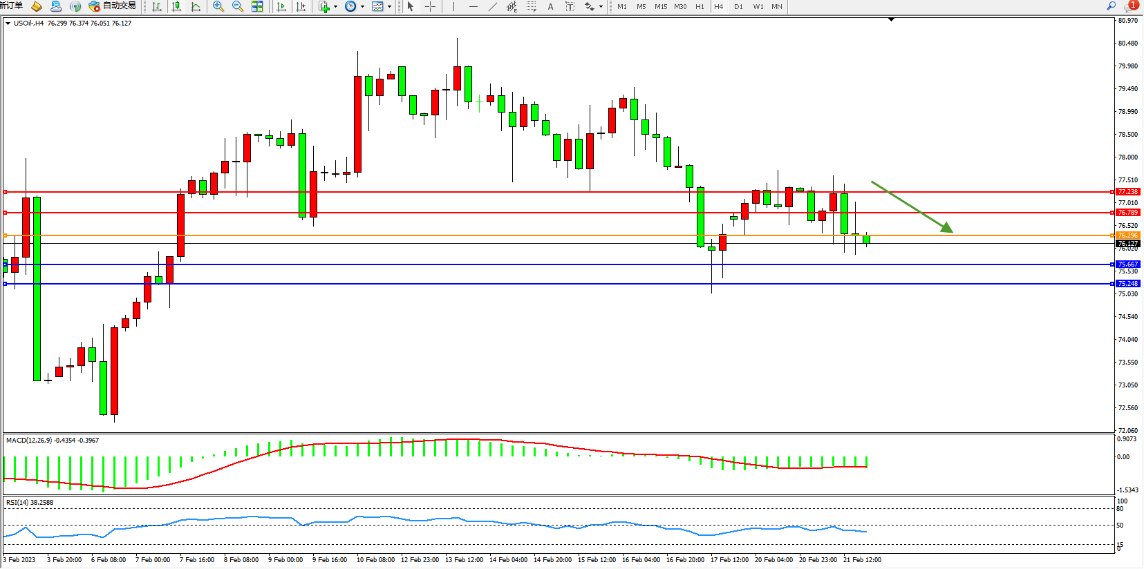 原油维持76.127附近震荡,市场担心全球经济放缓将减少燃料需求,促使投资者获利了结。但由于供应不足和需求反弹,未来几周油价可能会上涨。
