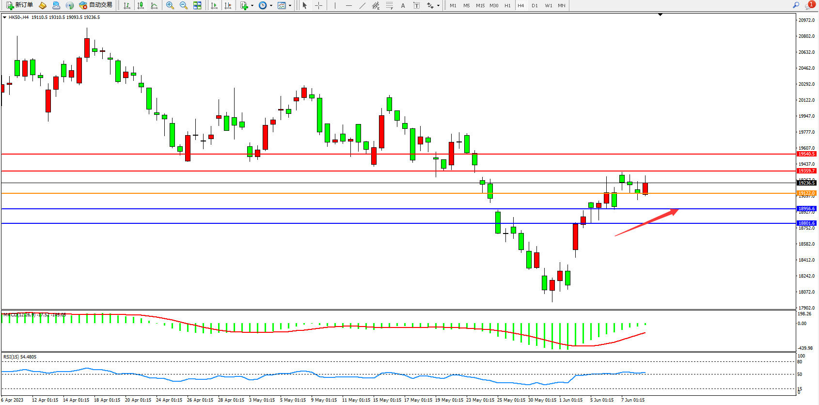 恒指HK50 4小时图