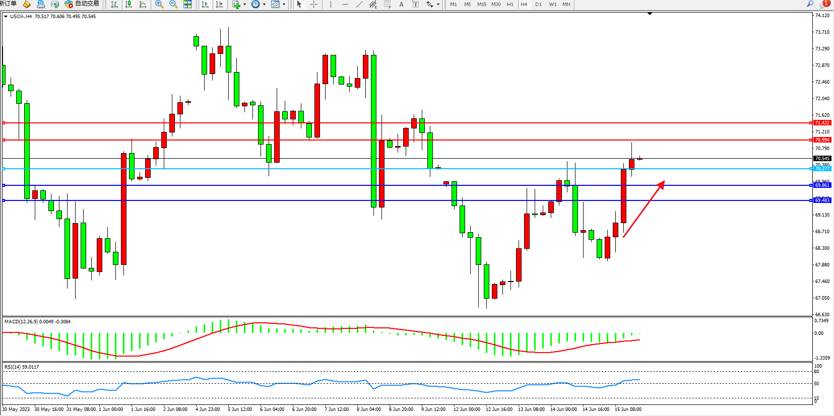 阻力位:70.994  71.422