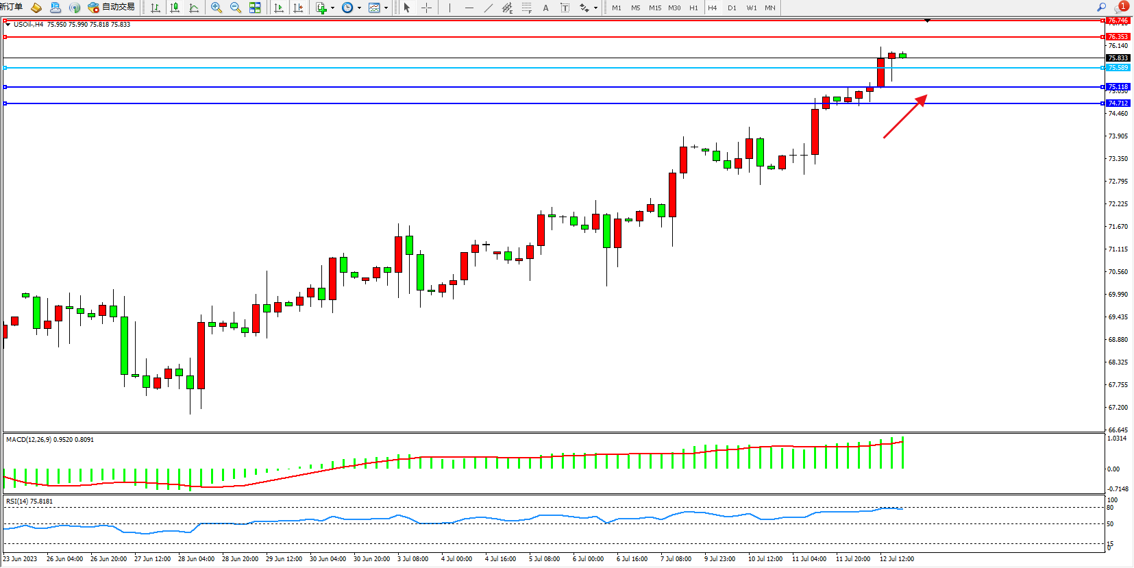 阻力位:76.353 76.746