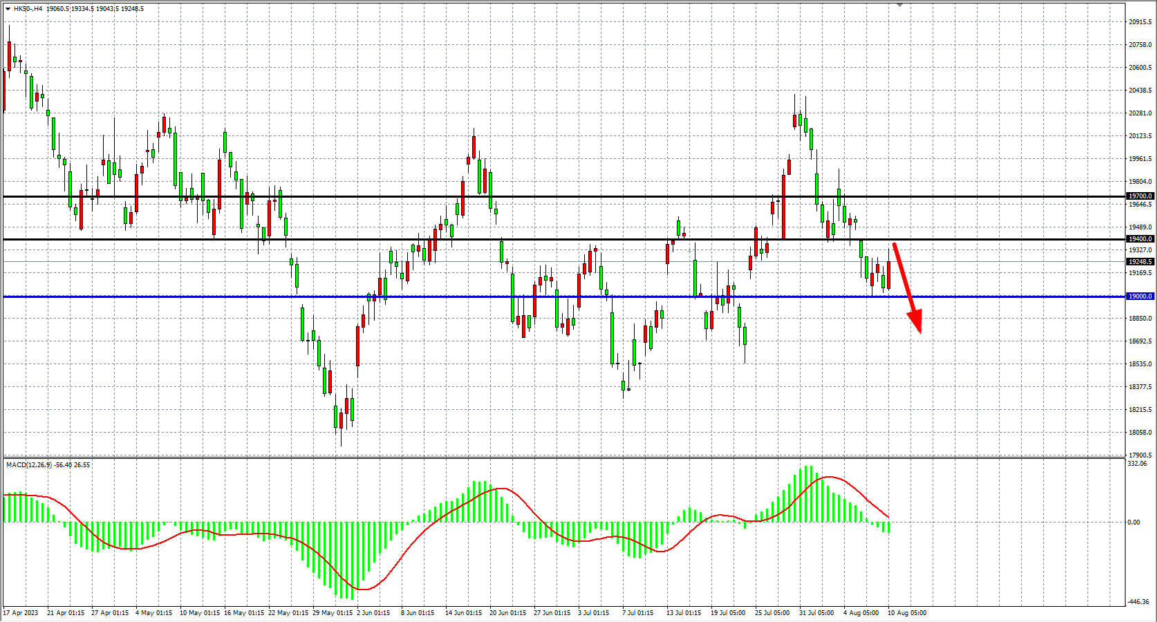 交易策略:19400 下方看跌,目标 19000 18600