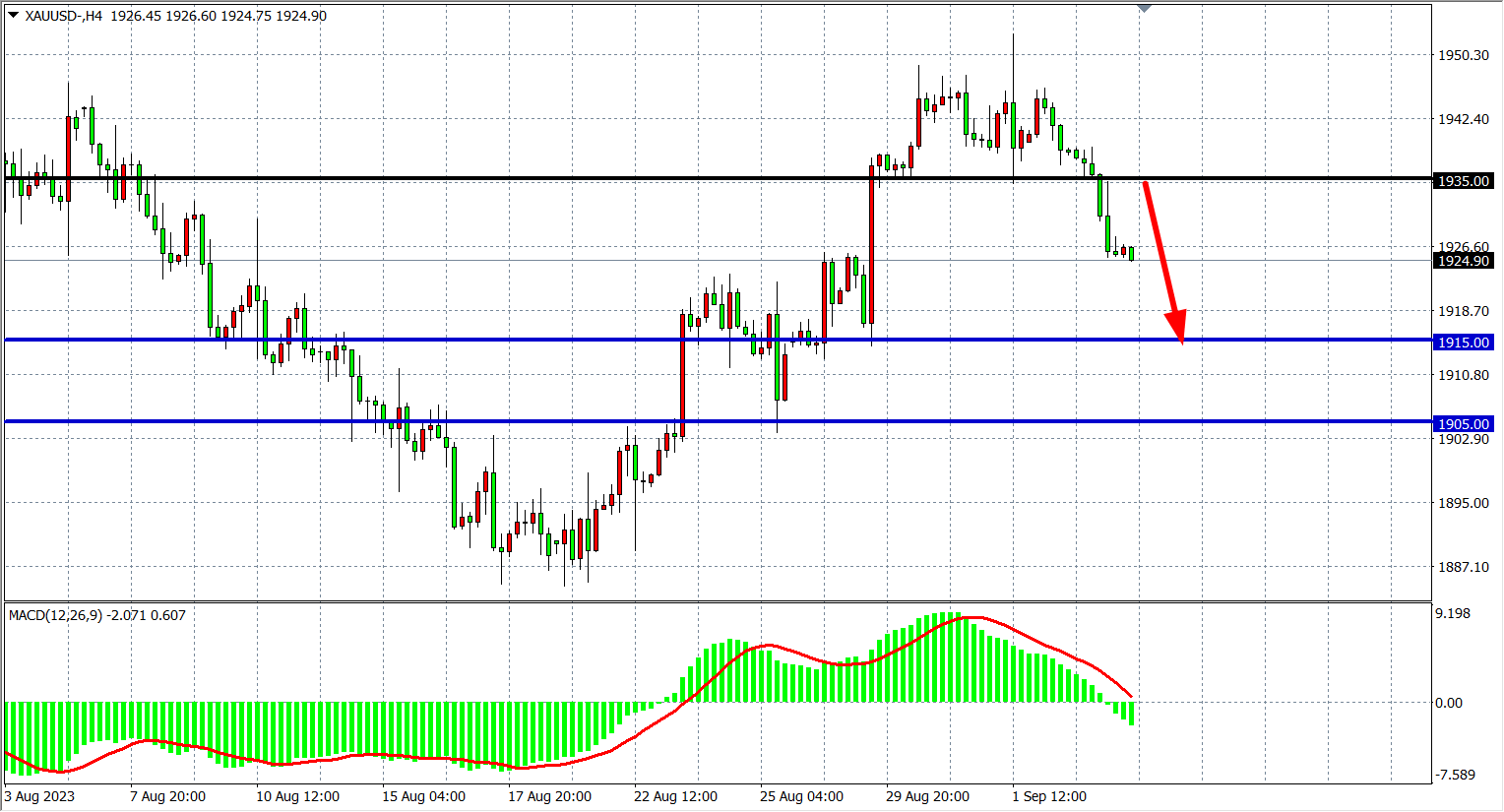 周二(9月5日)美联储官员又“放鹰”,沃勒警告市场别匆忙预测美联储已经结束加息,美指闻言上涨,一度上逼105关口,美债收益率涨至一周高位,现货黄金受到美元和美债收益率双双走高的压制,收跌0.64%。