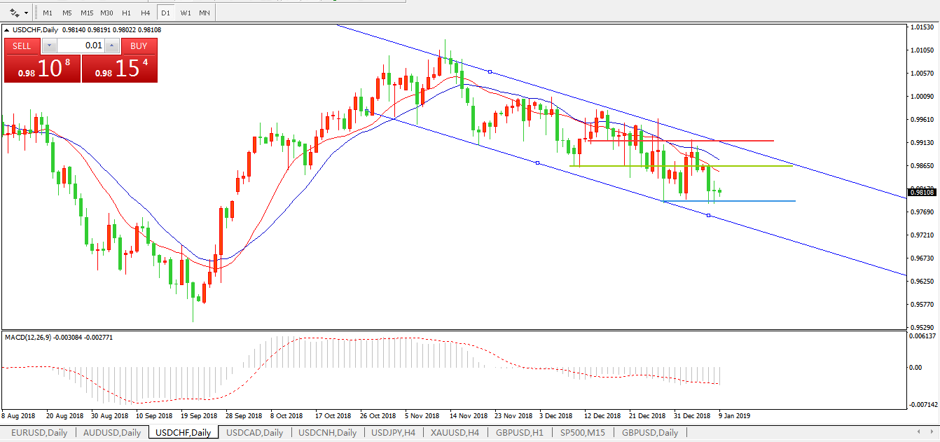 美元兑瑞郎USDCHF日线图