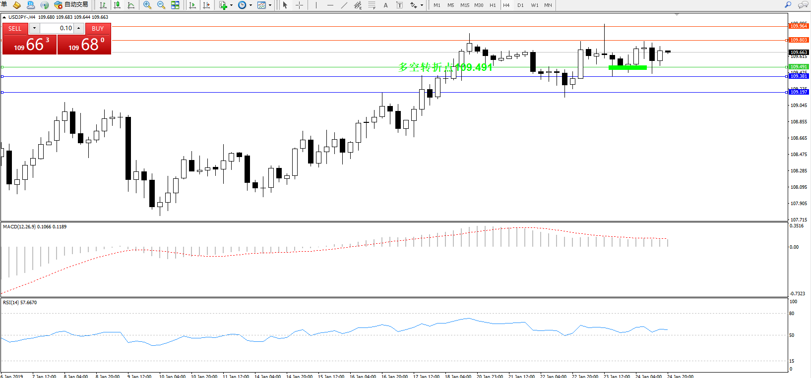 交易策略:109.491上方看涨,目标109.803、109.964