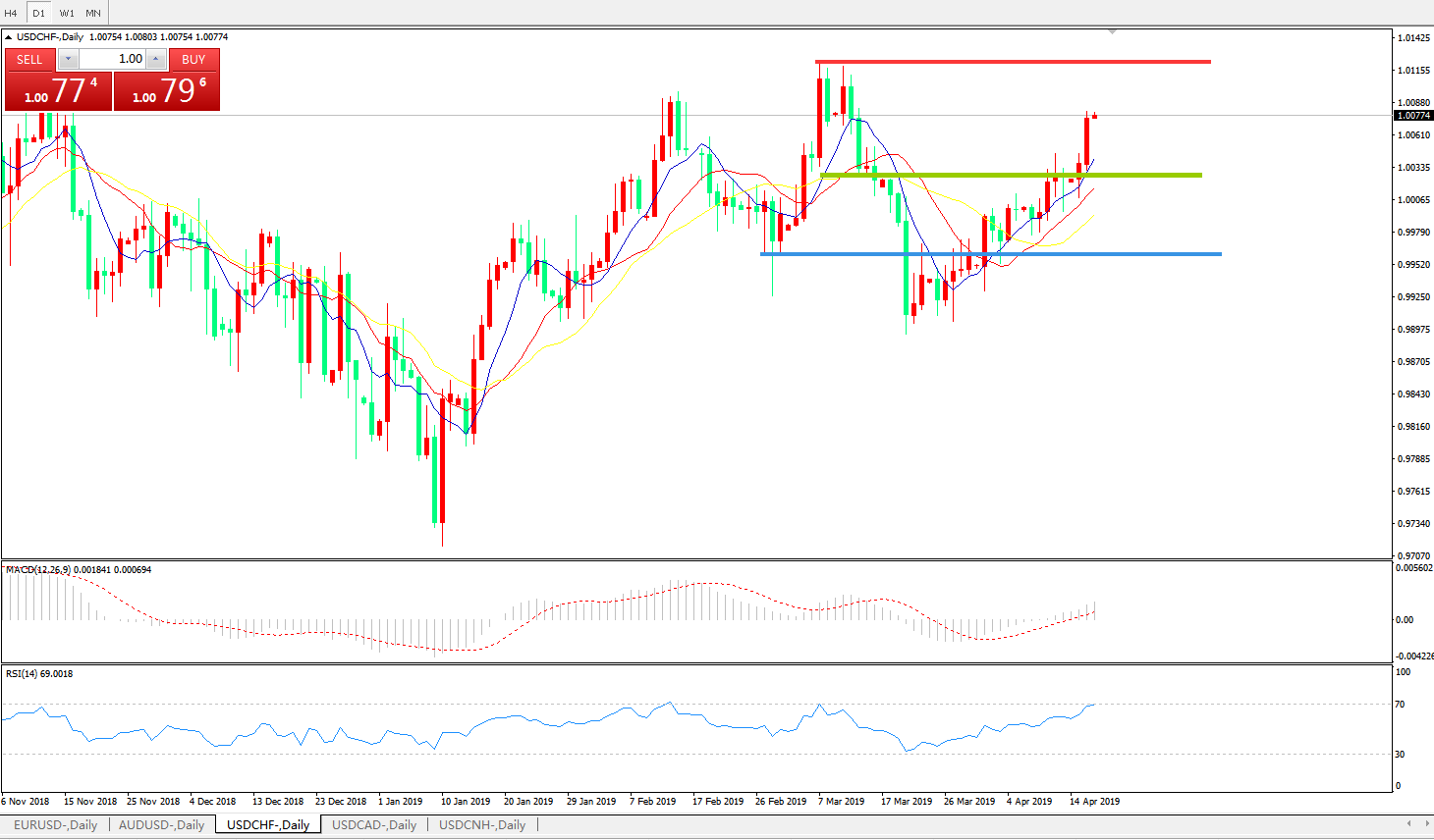 美元瑞郎USDCHF   日线图:
