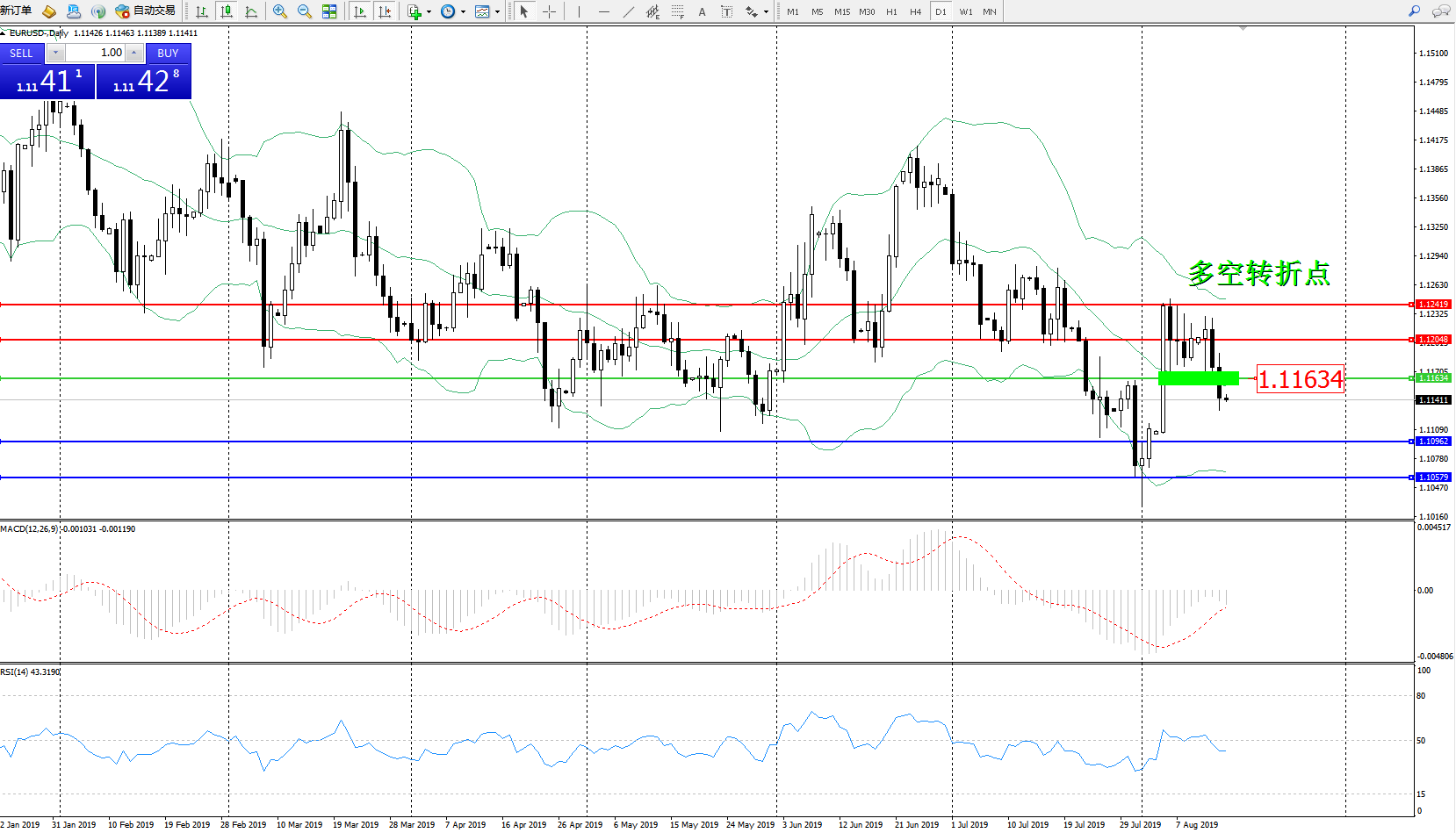 交易策略:1.11634下方看跌,目标1.109621.10579