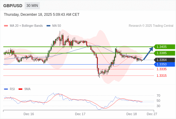 在 1.3350 之上,看涨,目标价位为 1.3385 ,然后为 1.3405 。