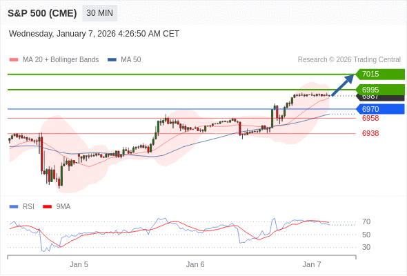 在 6970 之上,看涨,目标价位为 6995 ,然后为 7015 。