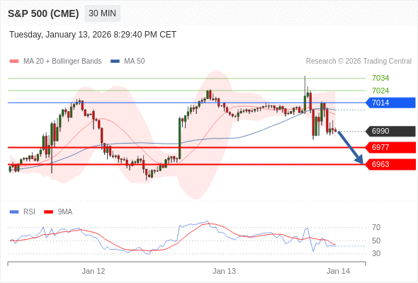 在 7014 之下,看跌,目标价位为 6977 ,然后为 6963 。