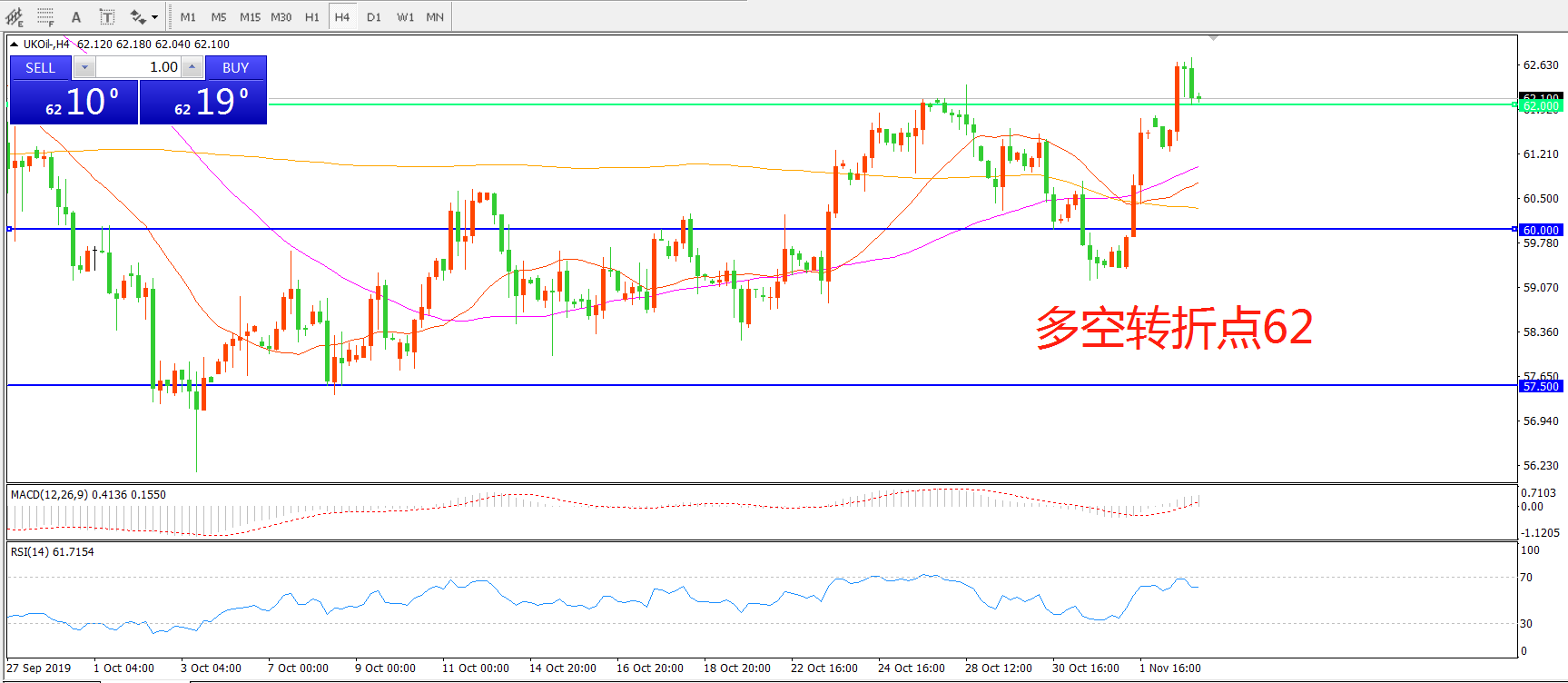 多空转折点:62.00