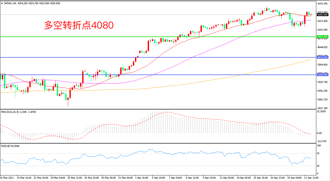 目前已经公布财报的标普500成分股中有90%的公司超出市场预期,在美国各大银行公布了表现强劲的第一季度业绩之后,市场关注的是,即将公布的一批大型科技相关公司的业绩能否维持这个财报季的好势头。鉴于美国2021年经济复苏强劲,风险情绪仍然对美股形成支撑。