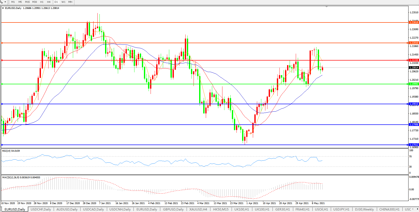 欧元兑美元EURUSD 日线图:
