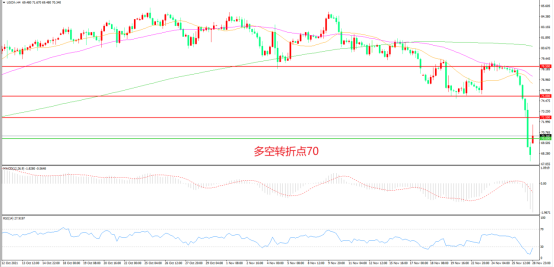 交易策略: 在70.00之下看跌,目标67.50             65.00