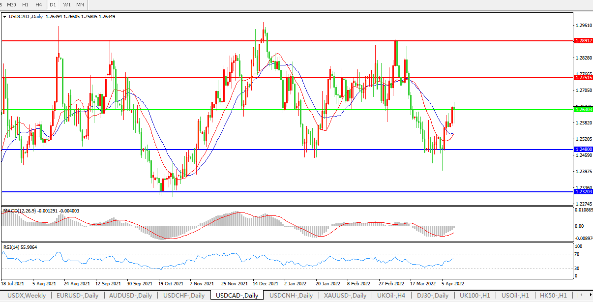 美元兑加元USDCAD 日线图: