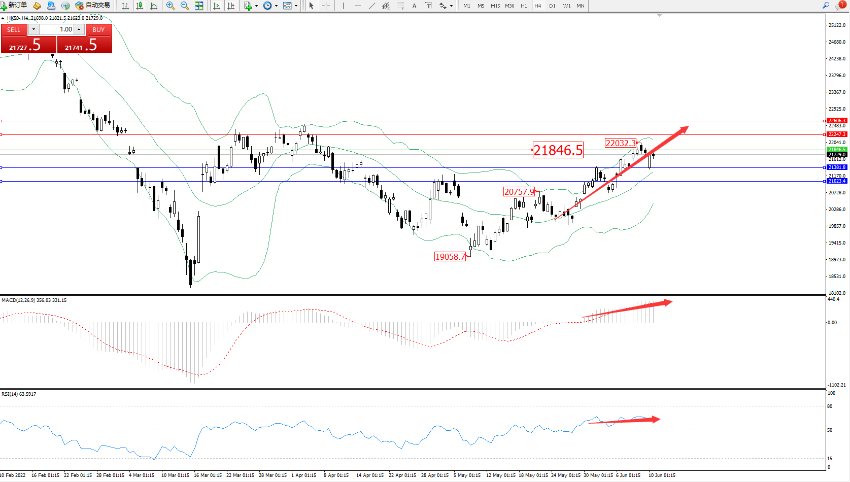 备选策略:21846上方看涨,目标22247、22606