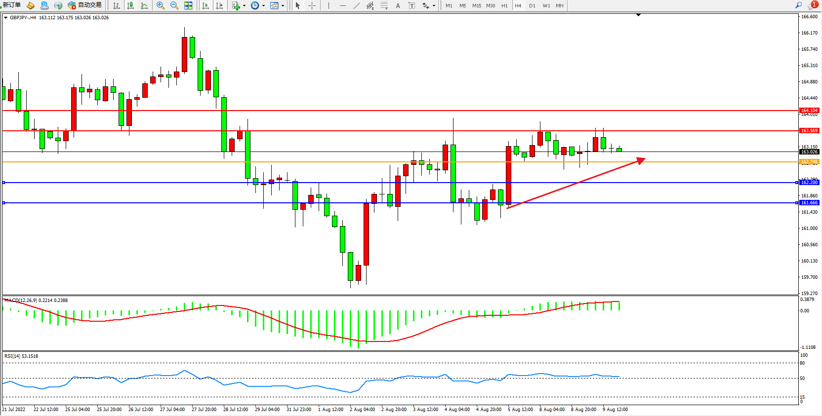 交易策略:162.748上方看涨,目标163.569、164.104