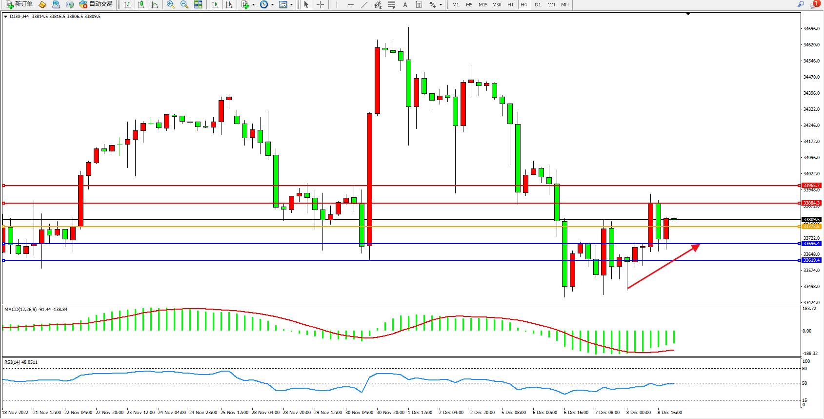 道琼斯指数12月8日(周四)收盘上涨183.10点,涨幅0.54%,报33781.02点;美国续请失业金人数升至2月初以来的最高水平,表明随着劳动力市场出现初步降温迹象,失业的美国人更难找到新工作。截至11月26日当周,续请失业金人数(包括已经领取失业救济一周或更长时间的人)增加6.2万人,至170万人。